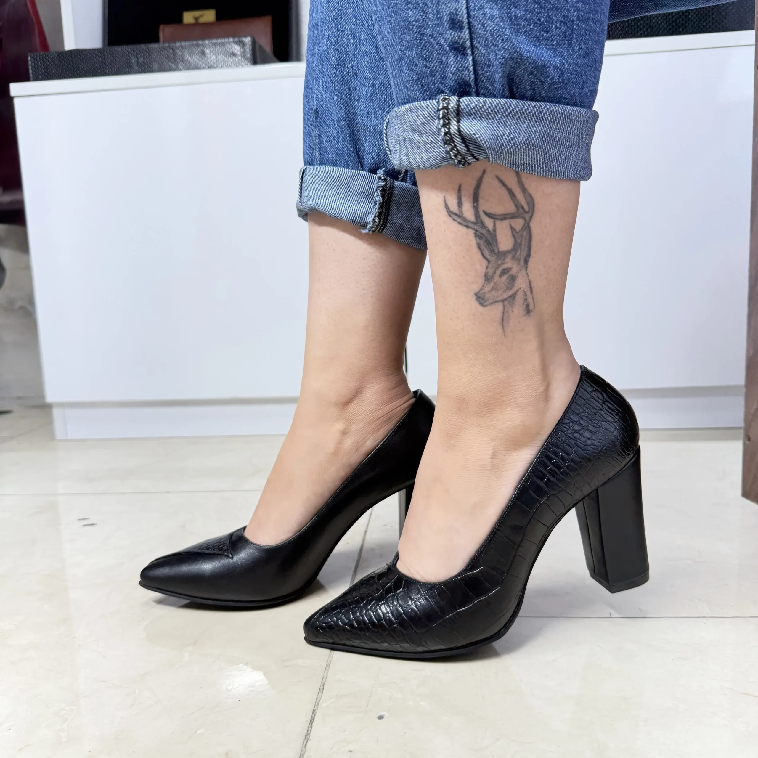 کفش پاشنه دار چرم طبیعی زنانه کد 9013
