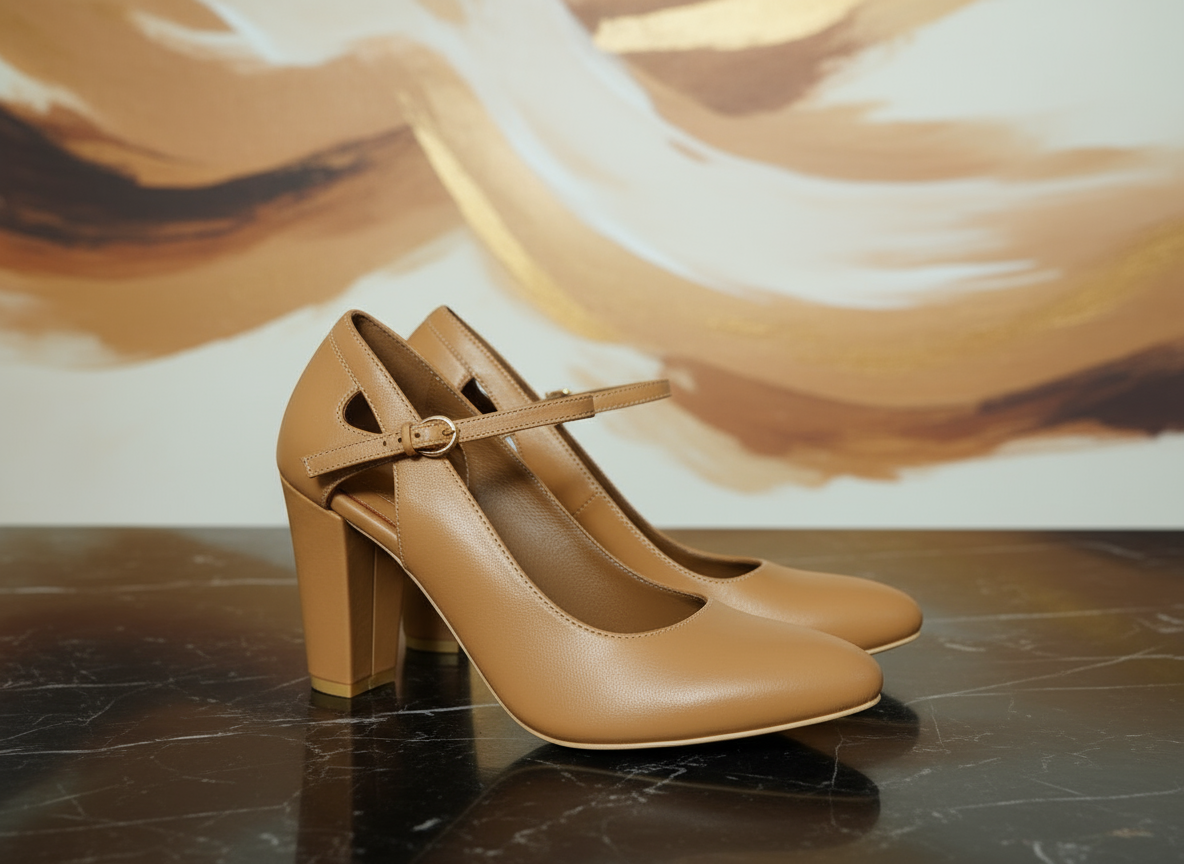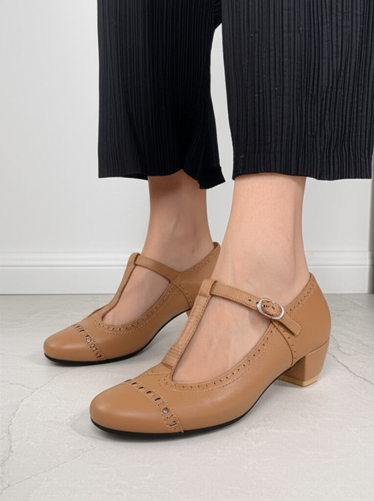 کفش پاشنه دار چرم طبیعی زنانه کد 2025