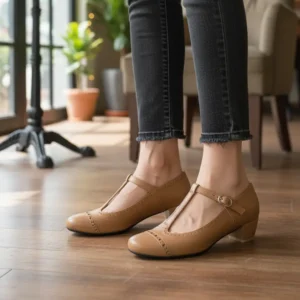 کفش پاشنه دار چرم طبیعی زنانه کد 9013